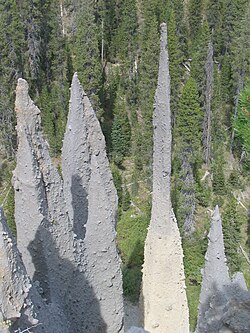 - The Pinnacles: Kako se vrući pepeo nakon erupcije počeo hladiti, tako su se formirali 60 do 90 m duboki rezervoari plina. Godinama poslije vrući se plin probio na površinu, probijajući sloj pepela i stvarajući dimnjake koji su kasnijom erozijom stvorili visoke šiljke.