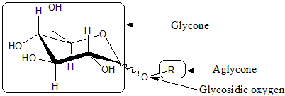 Kod prirodnih glikozida alkoholna (ili fenolna) komponenta zove se aglikon (nešećerni dio), a šećerna komponenta glikon.