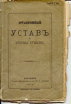 Prema klauzalama Berlinskog Kongresa, Istočna Rumelija imala je ostati pod političkom i vojnom nadležnosti Osmanskog carstva sa značajnom upravnom autonomijom (članak 13.). Zakonski okvir Istočne Rumelije definiran je Organskim Ustavom koji je usvojen 14. travnja 1879. i bio na snazi sve do ujedinjenja s Bugarskom 1885. Prema Statutu na čelu pokrajine trebao je biti kršćanski Generalni guverner, kojeg bi imenovala Visoka Porta uz odobrenje velikih sila. Zakonodavni organ pokrajine imala je biti pokrajinska (oblasna) skupština od 56 zastupnika, od kojih su 10 bili imenovani od strane guvernera, 10 bili stalni a 36 je izravno birao narod. Na prvoj Oblasnoj skupštini 45 zastupnika su bili Bugari, a ostali - Turci i Grci.[1]