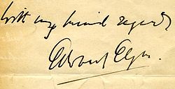 Sir Edward Elgar (Lower Broadheath, 2. lipnja 1857.[1] – Worcester, 23. veljače 1934.) bio je jedan od najpoznatijih i najznačajnijih engleskih skladatelja u razdoblju kasnoga romantizma. Za razliku od suvremenika, Elgar se nije nadahnjivao engleskim folklorom ni engleskom glazbenom prošlošću,[2] nego se u stvaralaštvu više oslanjao na vlastito glazbeno iskustvo i skladateljske uzore, posebice Schumanna, Brahmsa, Liszta, Wagnera i Richarda Straussa. Bio je uglavnom samouk: u mladosti je naučio svirati glasovir, violinu i fagot, a kao dirigent zborova i amaterskih instrumentalnih sastava rano je svladao tehniku vokalnog i orkestralnog sloga. Mnogi ga glazbeni znalci smatraju majstorom orkestracije, a njegova su djela i danas dijelom standardnoga programa uglednih svjetskih orkestara. Do ugleda je stigao postepeno, svraćajući na sebe pažnju engleske i međunarodne javnosti ponajprije svojim oratorijskim, a zatim i brojnim instrumentalnim djelima. Već od 1897. smatrali su ga dvorskim skladateljem: plemićki mu je naslov dodijeljen 1904.,[3] a dvadeset godina poslije i službeno je bio proglašen ravnateljem Kraljevske glazbe (engl. Master of the Kings Music).[4]