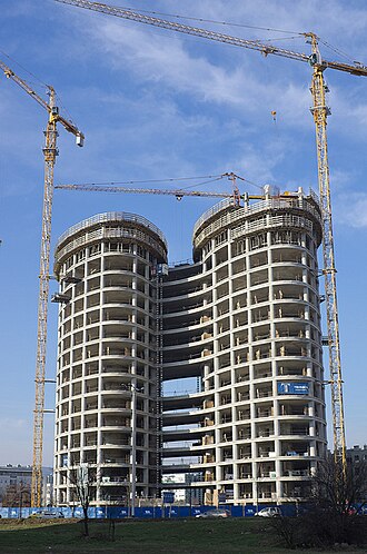 Iako je prvotno trebao imati 29 katova i 108 metara visine, objekt je zbog nepovoljne gospodarske situacije izgrađen kao dvostruki toranj od 22 kata, koji su međusobno povezani između 2. i 15. kata. Visina zgrade iznosi 81 metar. Ukupna korisna površina objekta iznosi 71.897 četvornih metara. Osigurano je čak 706 parkirnih mjesta, od čega 659 u podzemnim garažama koje se prostiru na nekoliko podzemnih etaža, te 47 vanjskih.