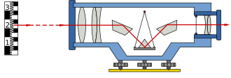 - Objektivna prizma za otklon zrake svjetlosti za 90°. Primjenjuje se za dovođenje vizurne osi u okomitu ravninu.