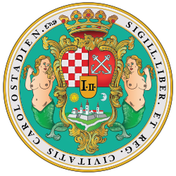 Grb grada Karlovca je povijesni grb slobodnog i kraljevskog grada Karlovca. Ovalni štit grada je vodoravnom crtom podijeljen na dva jednaka dijela. Gornji dio razdijeljen je okomitom crtom na dva polja: lijevo je ispunjeno bijelim i crvenim kvadratima povijesnog grba Hrvatskog kraljevstva, a na desnoj su nacrtana dva prekrižena srebrena sidra na crvenoj podlozi. Na donjoj polovici, koja je modre boje, lik je utvrđenog grada Karlovca s njegovim bedemima, crkvama i drugim zgradama, a optiču ga dvije rijeke. U lijevom gornjem uglu polja sja zlatno sunce u spodobi punog čovječjeg lica, a u desnom mladi, srebreni mjesec. U sredini ovog velikog grba nalazi se mali poprsni zlatni grb s inicijalima Josipa II. Nad čitavim grbom stoji zlatna pučka kruna. S lijeve i desne strane plašt štita pridržavaju dvije sirene. Repovi sirena prate izduženi donji dio štita. Obje sirene slobodnom rukom dodiruju svoje zlatne pramenove.[1]