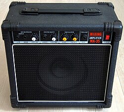 - Kućište pojačala obično je izrađeno od drveta i obloženo s tkaninom, a uglovi su pojačani zaštitnim kutnicima.