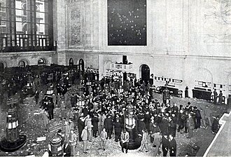 | 1914. | Burza je zatvorena zbog početka Prvog svjetskog rata. Ipak, nedugo nakon toga ponovno se pokreće trgovanje kako bi se prodale državne obveznice kojima se financirale oružane snage SAD-a. |