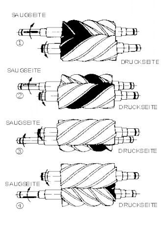 Postoje izvedbe s 2, 3, 4 ili 5 vretena. Promjena volumena radnog prostora ostvaruje se ulaskom početka navoja jednog vratila u prostor između navoja drugog vratila. Karakteristike ovih pumpi su: tihi rad, ravnomjeran protok i tlak, ravnomjeran pogonski moment i širok raspon protoka. Gubici zbog zračnosti relativno su veliki (stupanj korisnog djelovanja η < 80%), pa se pumpa u pravilo koristi za niže tlakove (do 10 MPa). Grade se za male i veoma velike protoke (pretovar tankera za naftu). Često se koristi u naftnoj industriji, u lokomotivama, kao pumpa za transport viskoznih fluida, pomoćna pumpa za filtriranje (posebni krug za filtriranje).