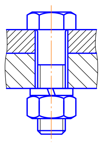 Tipični vijčani spoj s vijkom sa šestostranom glavom, maticom i podloškom.