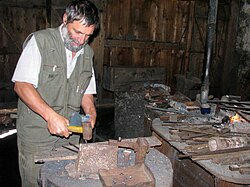 Ručno kovanje je postupak preoblikovanja materijala udarcima kovačkog čekića po otkivku. Otkivak se zagrije u kovačkoj vatri do bijelog sjaja. Kovačkim klještima se vadi iz vatre i polaže na nakovanj. Otkivak polako mijenja oblik i dimenzije pod udarcima čekića. Točnost dimenzija, oblika, kvaliteta proizvoda i količina ovise isključivo o preciznosti i iskustvu kovača.