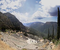Predložak:UNESCO-svjetska baština Ovo kultno mjesto bilo je sveto još od kasnog mikenskog doba. Od 8. st. pr. Kr. postalo je glasovito Apolonovo svetište u kojem je proročica Pitija davala dvosmislene odgovore na pitanja koja su države, gradovi ili pojedinci postavljali u važnim okolnostima.
