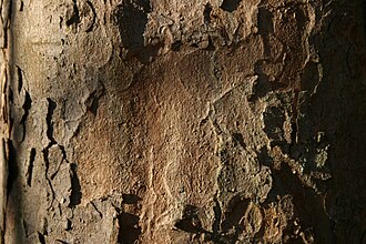 Kora je sive boje, tanka, glatka, u starijoj dobi počinje se raspucavati u obliku pločica i otpadati sa debla (kao i kod platane). Izbojci su sivosmeđe boje.