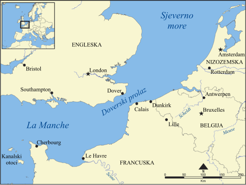 - Sjevernim morem kod Doverskih vrata na istoku, te s