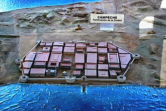 Početkom 18. stoljeća, grad je okružen impresivnim 6-8 m visokima i 2,5 m debelim zidinama dugima 2.536 m. Zahvaljujući njima je tijekom Yucatanskih ratova kasti (1847.-1901.), Campenche bio jedini grad koji nije stradao u sukobima mayanskih pobunjenika i europskih potomaka (tzv. Yucatecosa).