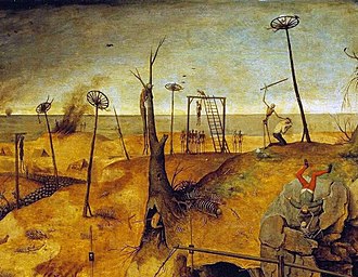- ↑ P. Thon, Bruegel's Triumph of Death Reconsidered, Renaissance Quarterly Vol. 21, No. 3, jesen 1968.