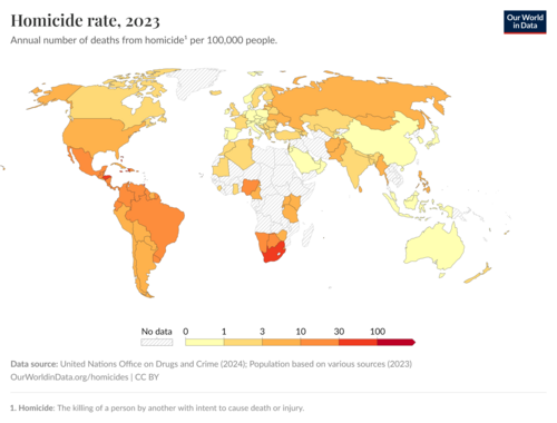 Učestalost ubojstava u svijetu od 1995. do 2016. godine.