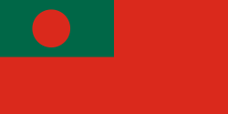 Zastava Bangladeša. Omjer 3:5Zastava Bangladeša usvojena je 17. siječnja 1972. Slična je prvotnoj inačici iz 1971. Ta je imala u suncu zemljovid Bangladeša. Zastava je sada gotovo jednaka japanskoj. Jedina razlika je podloga sunca koja je zelena, a ne bijela kao na japanskoj zastavi. Crvena je boja simbol sunca nad Bengalom, a zelena bogate vegetacije.