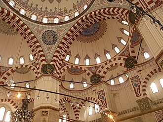 Iznutra je džamija pratila simetričan plan, ali njezino proširenje s narteksom ispod četiri polukupole nije bilo najuspješnije jer je počivalo na četiri masiva stuba koji su skraćivali prostor za molitvu, i Sinan ga nikada više nije ponovio.