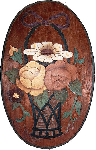 - intarzija se slaže u motive i lijepi na drvenu podlogu.