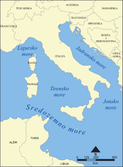 | Granična mora | Ligursko more, Jonsko more, Sredozemno more |