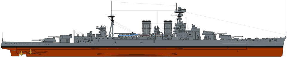 | Naoružanje | (1939.) 8 × BL 381 mm /42 mornarički top (4×2), 12 × 140 mm (12×1), 8 × 102 mm univerzalni top (4×2), 24 × 2-pdr 40 mm pom-pom top (3×8), 20 x 12,7 mm (5×4) strojnice Vickers, 4 × 533 mm torpedna lansera (1941.) 8 × 381 mm (4×2), 14 × QF 101,6 mm Mk XVI protuavionski top (7×2), 24 × 2-pdr 40 mm pom pom top (3×8), 20 × 12,7 mm top (5×4), 5 raketnih lansera Unrotated Projectile sa 20 cijevi, 4 × 533 mm torpedna lansera |