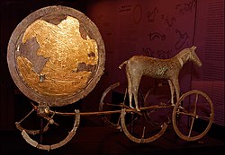 Iz brončanog doba potječu tzv. „Sunčana kola“ iz Trundholma (oko 1400. pr. Kr.) koja imaju jasne odlike nordijskog kulturnog kruga. Ona predtsvljaju nordijski mit kako sunce zapravo putuje preko neba u kolima koja vuku konji.