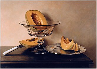 Mauro David, Kristalna zdjela s dinjama (Fruttiera di cristallo con meloni), 1999., ulje na dasci