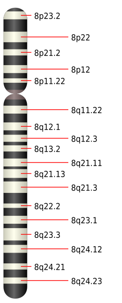 • Parametartypenije dopušten u klasijournal - ↑ (eng.) Geni kromosoma 8 na Genetics home reference, pristupljeno 19. srpnja 2013.