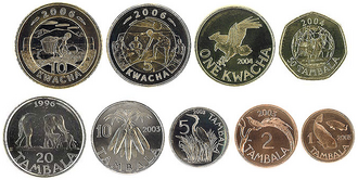 U optjecaju su kovanice od 1, 2, 5, 10, 20, 50 tambala, te 1, 5, 10 kvača i novčanice od 20, 50, 100, 200, 500, 1000 kvača.