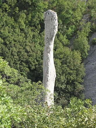Iznimno su geomorfološki i krajobrazno vrijedni neboderasti vapnenački stupovi i stijene. Znanstvena je pretpostavka da je se ovdje zbivalo taloženje vodoravnih slojeva paleogenskih vapnenaca, iza kojih je nadošlo tektonsko izdizanje i raspucavanje uslijed čega je nastao kanjon. Današnji izgled u završnom oblikovanju dala je postupna i dugotrajna erozija i okršavanje. Svjedoci bogate geološke povijesti i paleookoliša su brojni fosilni ostatci različitih krednjaka i školjaka vidljivi na siparu. [1]