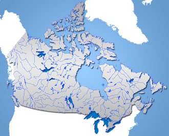 Glavne hidrografske karakteristike Kanade su obilje vode i neznatno kolebanje vodostaja u rijekama, brzaci i potoci, mnoštvo jezera i dugotrajna zaleđenost (5-9 mjeseci). U zapadnom dijelu Kanade rijeke imaju duboko usjećene doline, a zbog velikog pada djelomično su plovne samo rijeke Fraser i Columbija. Na niskom području Kanadskog štita poriječja nisu međusobno jasno određena, neke se rijeke odvajaju na više strana. Na rubu Kanadskog štita nalazi se niz jezera (Velika jezera, Winnipeg, Reindeer, Great Slave, Great Beart...). Na sjeverozapadnom dijelu Kanade mnoge rijeke uključujući i najdulju kanadsku rijeku Mackenzie (4240 km) utječu u Sjeverno ledeno more. Razvojem hidroelektrana mnoge se rijeke iskorištavaju za dobivanje električne energije.