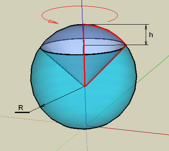 Obujam kuglinog odsječka, ako je kugla polumjera r i visine odsječka h :