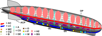 Relativno mali prostor za putnike i posadu nalazio se na donjem dijelu konstrukcije. Na velikim cepelinima boravišni i teretni prostori su iz aerodinamičkih razloga bili smješteni u unutrašnjosti konstrukcije.