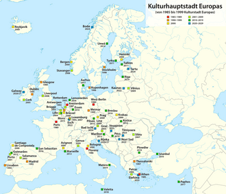 - 2000.: Avignon (Francuska) - Bergen (Norveška) - Bologna (Italija) - Bruxelles (Belgija) - Helsinki (Finska) - Krakow (Poljska) - Prag (Češka) - Reykjavik (Island) - Santiago de Compostela (Španjolska)