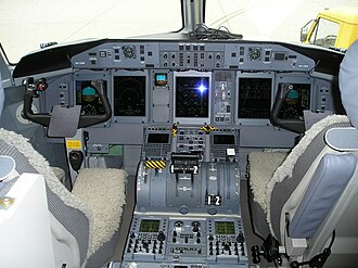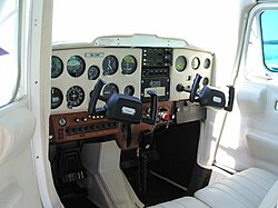 U pilotskoj kabini smješteni su instrumenti koji omogućuju pilotu upravljanje avionom, praćenje rada njegovih sklopova i motora. Osnovni instrumenti leta i komande leta su udvostručeni. Pilot upravlja zrakoplovom iz sjedišta s lijeve a kopilot s desne strane. U većim zrakoplovima unutar kabine nalazi se i inženjer leta. U novijim avionima klasični volan zamijenile su upravljačke palice (eng. joystick).