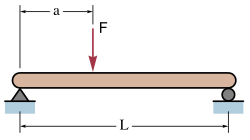 Najveći progib δmax (u mm) jednostavne grede, koja je opterećena silom F koja nije u središtu, a nalazi se na 2 jednostavna oslonca, dat je izrazom:
