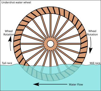 U Kini i ostatku Dalekog istoka zahvaljujući energiji vode koristile su se crpke zasnovane na principu kotača sa spremnicima za podizanje vode u kanale za navodnjavanje. Tijekom 1830-ih godina, na vrhuncu perioda izgradnje kanala, energija vode se koristila za prijevoz teglenica uz, kao i niz strme padine pomoću tračnica s nakošenom ravninom. Izravni prijenos snage zahtijevao je da djelatnosti koje su koristile energiju vode budu smještene blizu vodopada. Primjerice, tijekom druge polovice 19. stoljeća izgrađeni su mnogi mlinovi za žito kraj slapova Sv. Antuna (Saint Anthony), koji su koristili 15-metarski vodopad do rijeke Mississippi. Ti su mlinovi doprinijeli razvoju Minneapolisa.