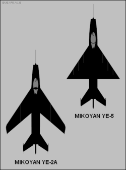 Polazna točka bio je Ye-1 (Ye = Yedinitsa, "poseban prototip") kojeg je trebao pokretati jedan Mikulonov AM-5A turbo-osovinski mlazni motor. Isti se pokazao neadekvatnim te zamijenjen s poboljšanim Mikulinom AM-9B koji se koristio u MiGu-19. Uskoro je motor ponovno zamijenjen, ovaj put s Mikulinom AM-11 koji se tek razvijao te je bio optimiziran za brze i lake lovce. Oznaka prototipa je promijenjena Ye-2.