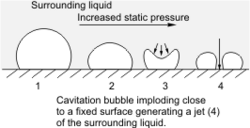 Treba napomenuti da je energija kavitacije nevjerojatno visoka: prilikom implozije mjehurića plina temperatura iznosi nekoliko tisuća ºC, tlak nekoliko stotina bara, a stvara se i svjetlost (sonoluminiscencija). Ma koliko ovi podatci izgledali nevjerojatni, ustanovljeni su pri laboratorijskim mjerenjima kavitacije, jer je njezino sprječavanje jedno od glavnih područja proučavanja hidrodinamike, obzirom da rad u kavitacionom režimu izaziva znatna oštećenja i nepouzdanost u radu hidrodinamičkih uređaja, te se po svaku cijenu nastoji izbjeći.[3]