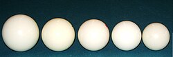 Za razliku od bjelokosti, prijašnjeg materijala koji se upotrebljavao za izradu kugli, danas se proizvođači oslanjaju uglavnom na bakelit, celuloid,[4] plastiku i kristalit.