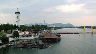 - ↑ "Zwischen 1870 und 1875 gab es die erste Donauregulierung" and "1988 [...] fertig gestellt." (from a test for immigrants, webpage: Auslaender-P1 (Arhivirano 28. rujna 2007.), applying for Austrian citizenship; official paper, in German)