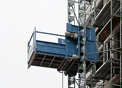 Građevinsko dizalo služi za prijenos (transport) materijala, a po mogućnosti i ljudi pri izvođenju građevinskih radova. Najčešće su postavljeni na vanjskoj strani zgrade koja se gradi. Osim malog građevinskog dizala, postoji i građevinsko dizalo s oknom i brzi građevinskim dizalom. Okno građevinskog dizala s oknom sastavljeno je kao slobodno stojeća skela na kojoj su učvršćene dvije vodilice za vozni koš. Pogonsko postrojenje dizala s bubnjem na koji se namata čelično uže smješteno je na zemlji. Nosivost takva dizala iznosi do 2 tone, a visina dizanja do 40 metara. Građevinska dizala s oknom sve se više upotrebljavaju za vrlo visoke gradnje, jer pri nosivosti od oko 1,5 tona mogu imati visinu dizanja do 200 metara. Međutim, na montažnim gradnjama s već ranije dogotovljenim dijelovima zgrade prikladnija su građevinska dizala.