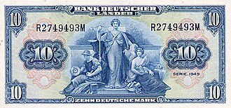 Prva serija novčanica izdana je 1948. g. povodom reforme od «Bank deutscher Länder» pod upravom zapadnih saveznika. Američki dolar je bio uzor za izgled novih novčanica. Korištenje novčanica se 24. lipnja 1948 proširilo na sva tri zapadna dijela Berlina. Te novčanice se dobile žig sa slovom («B»).