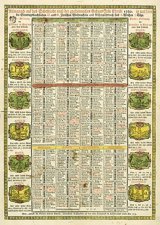 Crkveni kalendar za 1780. godinu.