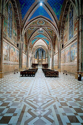 Unutrašnjost Gornje crkve je važan primjer rano-gotičkog talijanskog slikarstva 13. stoljeća (tzv. Treccentto). I Gornja i Donja crkva su ukrašene freskama brojnih srednjovjekovnih slikara, rimske i toskanske škole (Cimabue, Giotto, Simone Martini, Pietro Lorenzetti i vjerojatno Pietro Cavallini). Raznolikost i kvaliteta slika čini baziliku jedinstvenom i nezaobilaznom u prikazivanjuovog razdoblja talijanske umjetnosti.