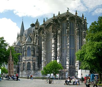 Kako bi se osigurao dovoljno veliki prostor za brojne hodočasnike, izgrađen je veliki gotički kor u obliku dvorane s dvodijelnom tzv. „staklenom kapelom“ (Capella vitrea) koja je posvećena na 600tu godišnjicu smrti Karla Velikog. Kupola, nekoliko drugih kapela i zvonik su izgrađeni kasnije.