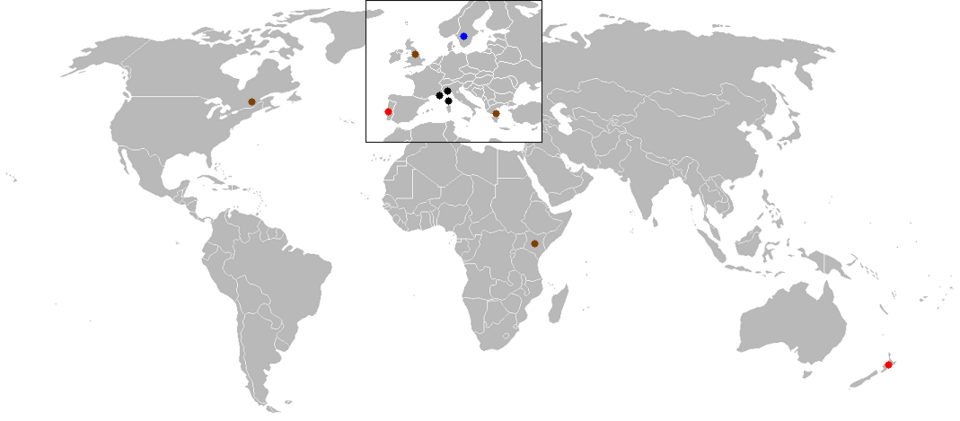 | Crno = Asfalt | Smeđe = Šljunak | Plavo = Snijeg/Led | Crveno = Miješana podloga |