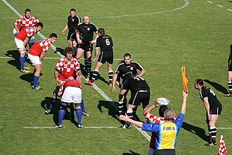 Ako lopta ode izvan granica igrališta (u touch), igra se nastavlja line-outom. Ako neka momčad napravi prekršaj i utakmica se zbog toga zaustavi, momčad nad čijim je igračem prekršaj napravljen, nastavit će igru skupom, slobodnim ili kaznenim udarcem, ovisno o težini prekršaja.
