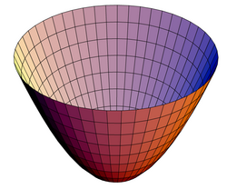 Paraboloid je u matematici ploha drugog reda ili kvadrika. Postoje dvije vrste paraboloida: eliptički i hiperbolički paraboloid. Eliptički paraboloid ima oblik kao ovalna čaša i može imati maksimalnu i minimalnu vrijednost. U pravokutnom koordinatnom sustavu s tri osi x, y i z, eliptički paraboloid se može opisati kao: [1]