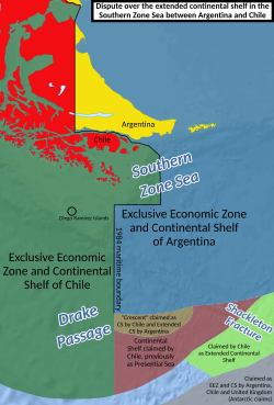 - ↑ Diplomatic conflict between Argentina and Chile over the Continental Shelf. Ministry of Agriculture, Fisheries and Food (Spain) 0. 14 September 2021 0. Pristupljeno 17 October 2024.