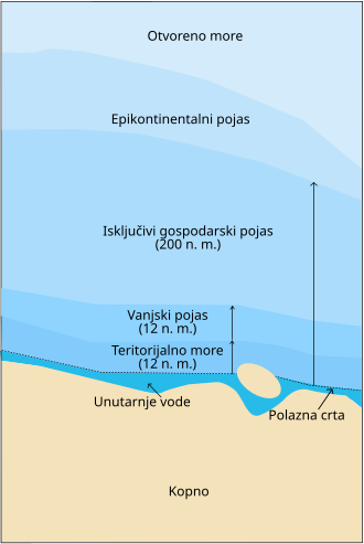 Unutarnje morske vode obalne države su vode koje se nalaze od polazne crte teritorijalnog mora u smjeru kopna. Unutarnje morske vode obuhvaćaju luke i zaljeve na obali kopna i otoka, dijelove mora između crte niske vode na obali kopna i ravne polazne crte za mjerenje širine teritorijalnog mora. Zaljevom se smatra jasno istaknuta uvala uvučena u kopno, čija je morska površina jednaka površini ili je veća od površine polukruga kojemu je duljina promjera jednaka duljini prave crte koja zatvara ulaz u zaljev. Morska površina zaljeva mjeri se od crte niske vode uzduž obale zaljeva i prave crte koja zatvara ulaz u zaljev.