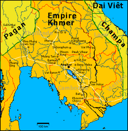Angkor, glavni grad khmerske kulture, bio je u današnjoj Kambodži. Na vrhuncu svoje moći, carstvo se prostiralo od Južnokineskog mora do Sijamskog zaljeva (današnji Tajland) a obuhvaćalo je današnju cijelu Kambodžu, istočni Tajland, Vijetnam i Laos.